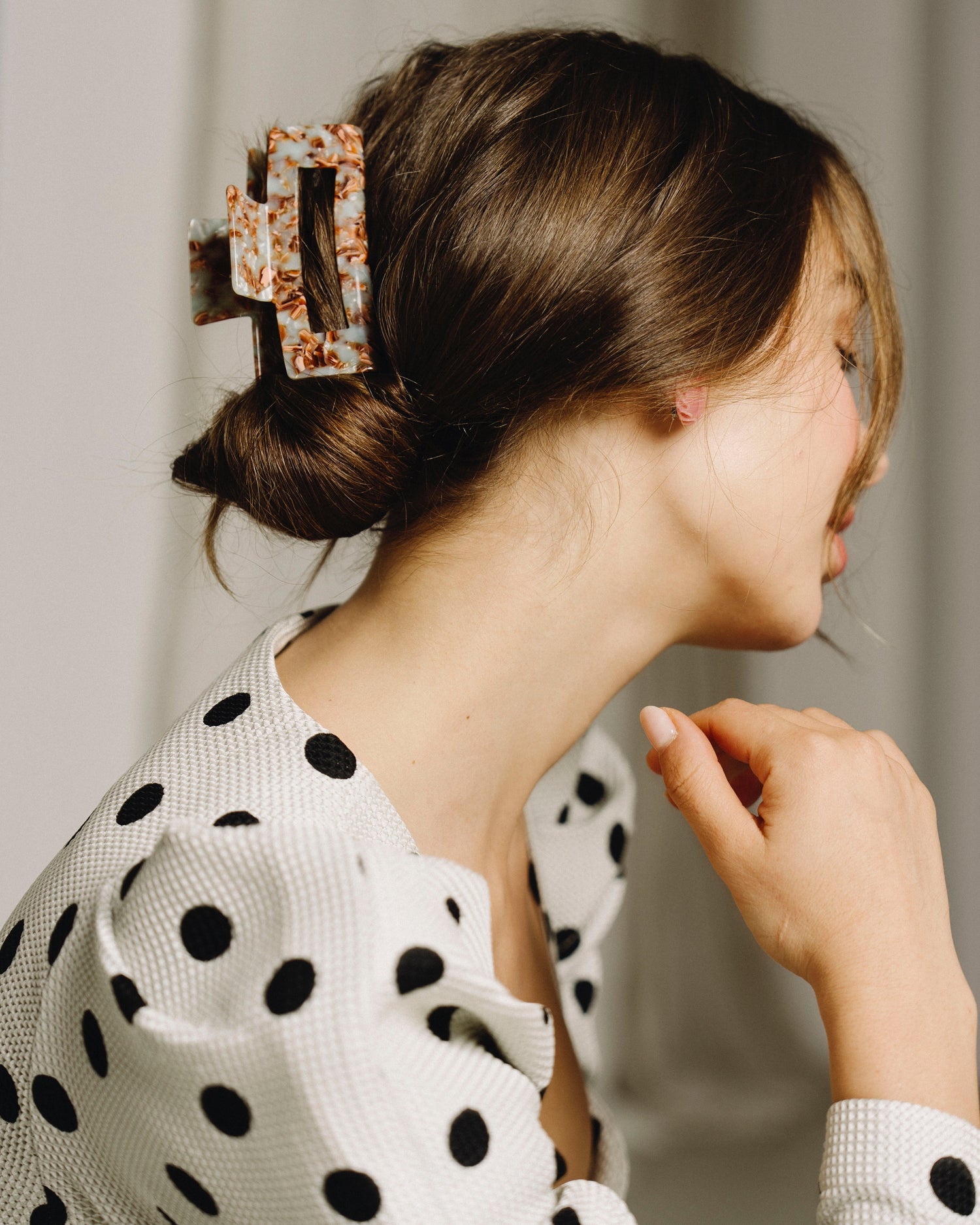 Unsere Haarspangen bestehen nicht aus Kunststoff, sondern aus Acetat, einem starken Material, das biologisch abbaubar ist.