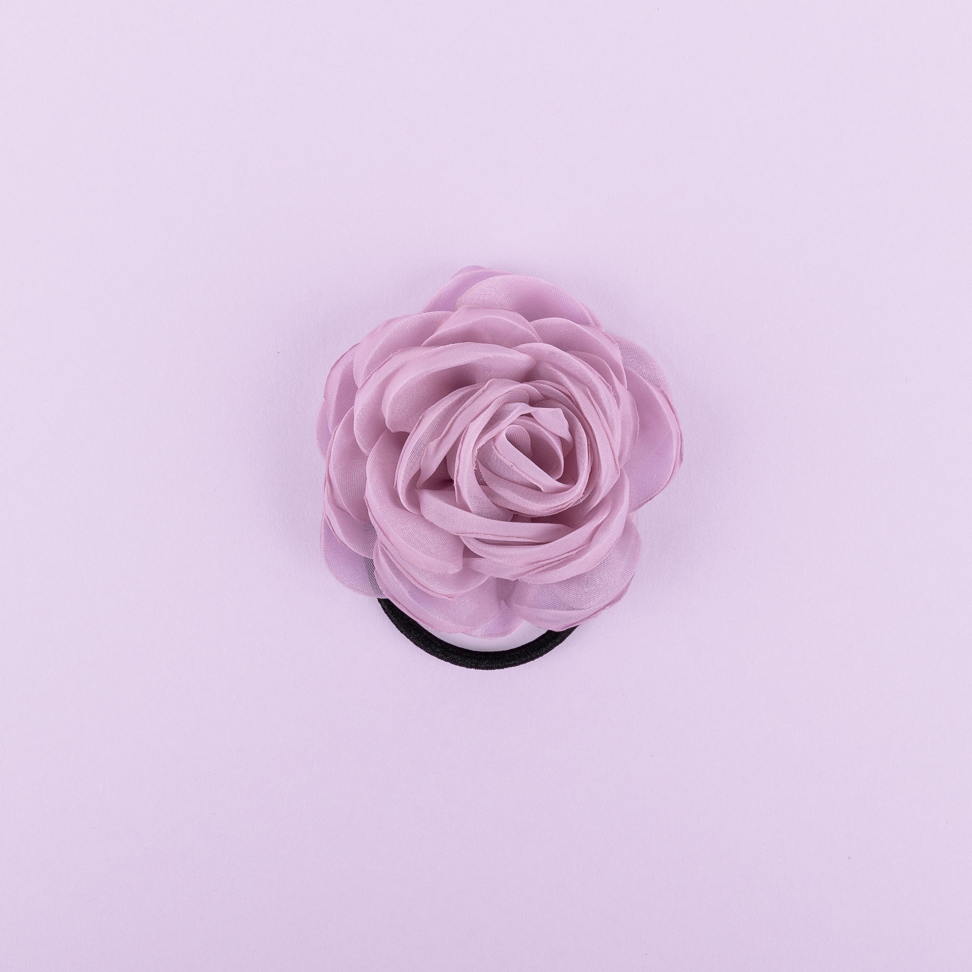 Add a unique message to your look with this beautiful pink/light purple rose hair elastic.
