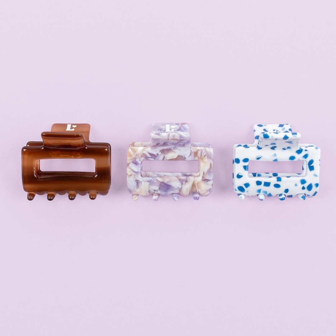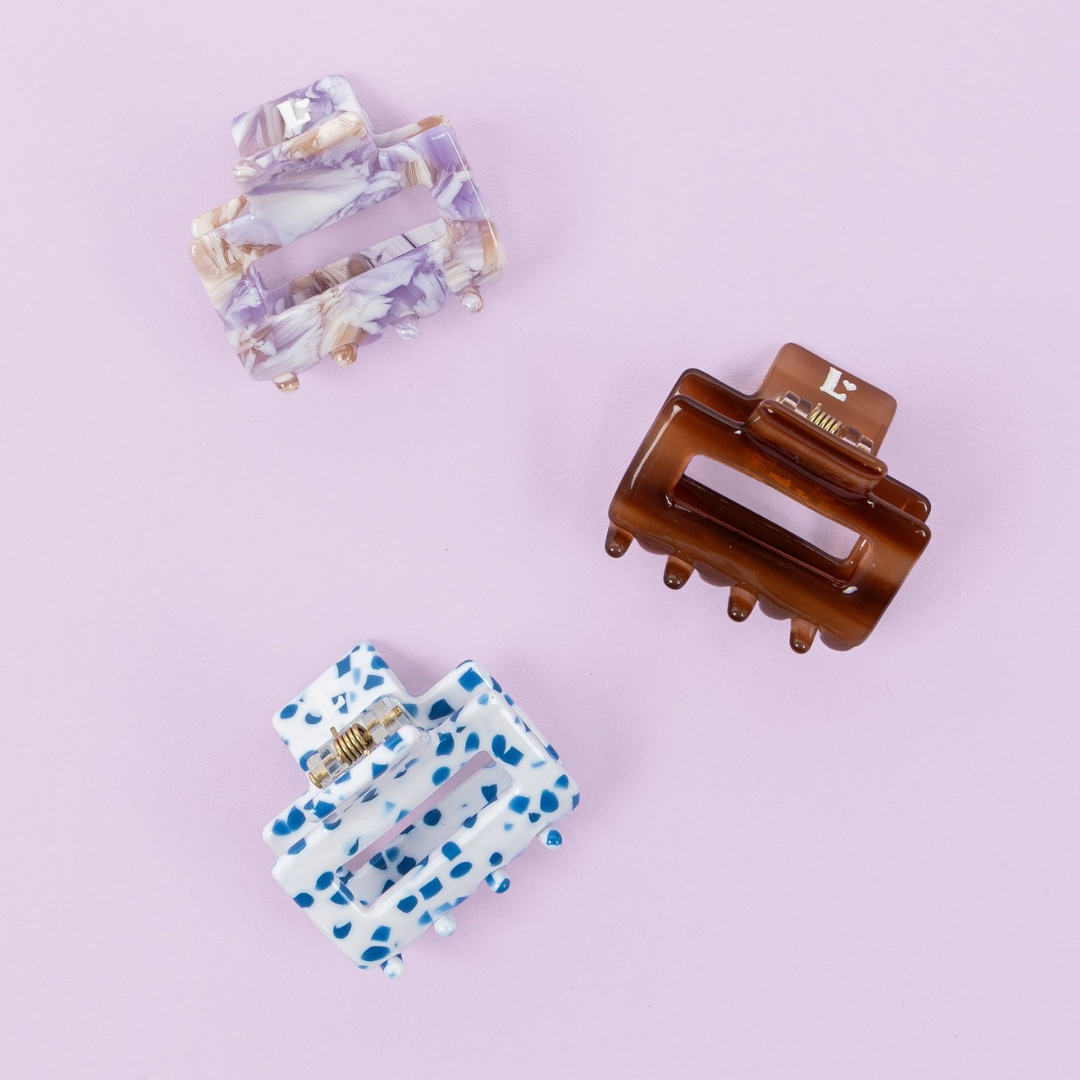Onze haarclips zijn gemaakt van celluloseacetaat, een plantaardig bio-plastic gecertificeerd door ISCC PLUS. In vergelijking met op aardolie gebaseerd plastic is acetaat duurzamer en biologisch afbreekbaar. De acetaat- en metalen onderdelen zijn getest en vrij van schadelijke stoffen zoals lood, cadmium en ftalaten.