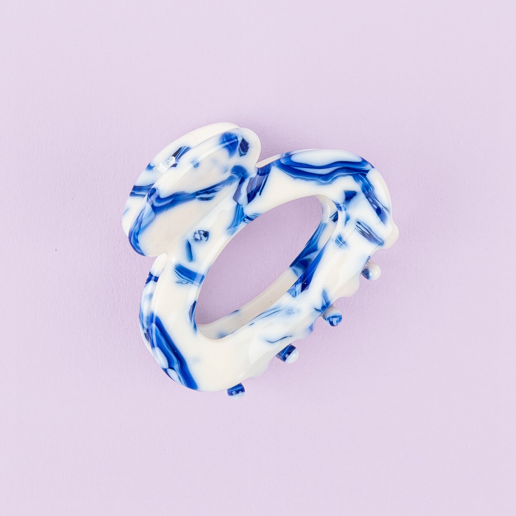 Unsere Haarspangen bestehen aus Celluloseacetat, einem pflanzlichen Biokunststoff mit ISCC PLUS-Zertifizierung. Im Vergleich zu erdölbasiertem Kunststoff ist Acetat nachhaltiger und biologisch abbaubar. Die Acetat- und Metallkomponenten wurden getestet und sind frei von Schadstoffen wie Blei, Cadmium und Phthalaten.