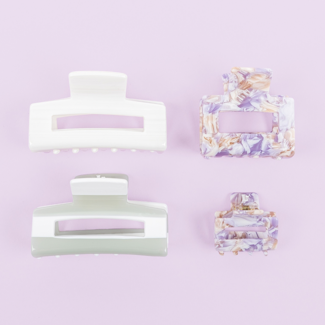 Unsere Haarspangen bestehen aus Celluloseacetat, einem pflanzlichen Biokunststoff mit ISCC PLUS-Zertifizierung. Im Vergleich zu erdölbasiertem Kunststoff ist Acetat nachhaltiger und biologisch abbaubar. Die Acetat- und Metallkomponenten wurden getestet und sind frei von Schadstoffen wie Blei, Cadmium und Phthalaten.