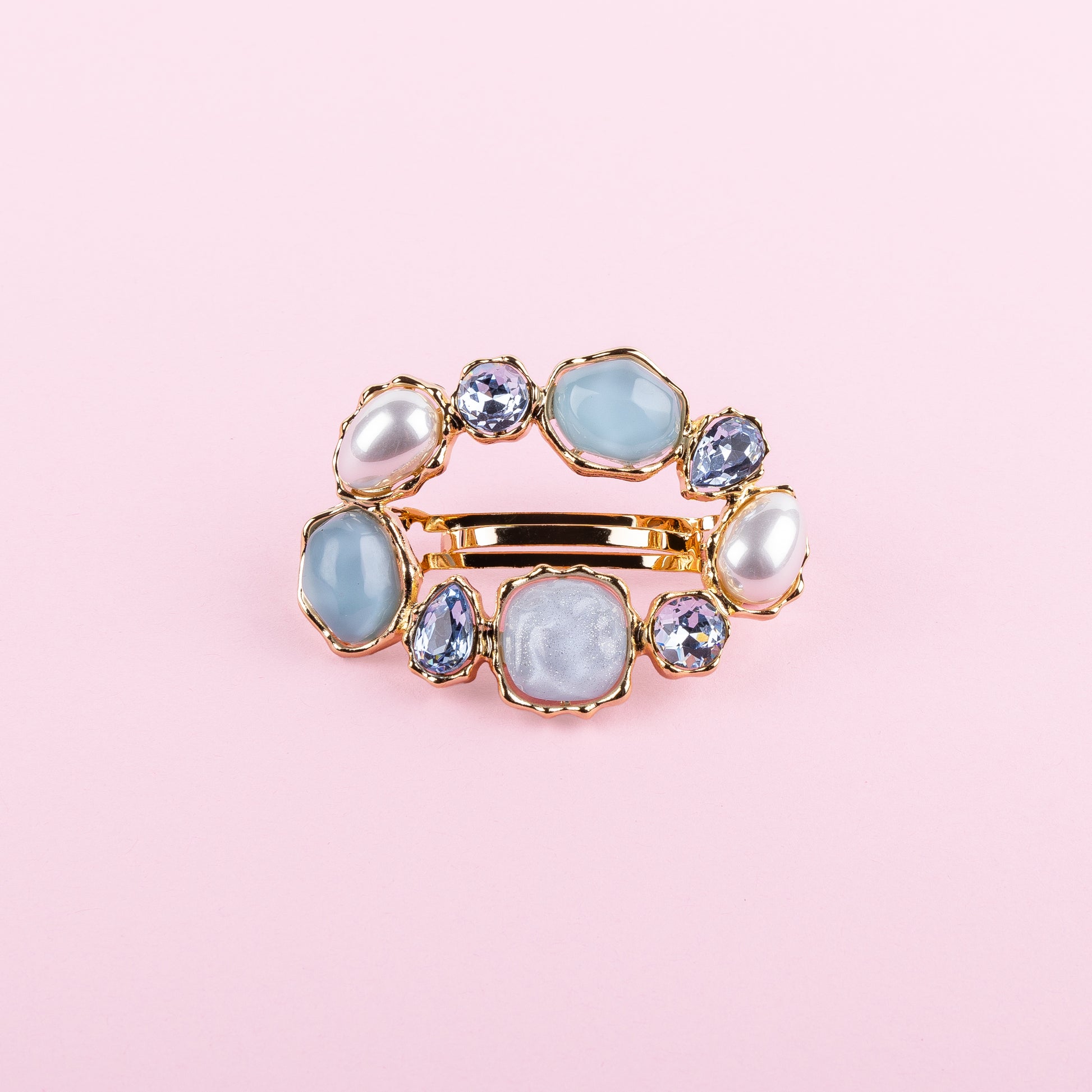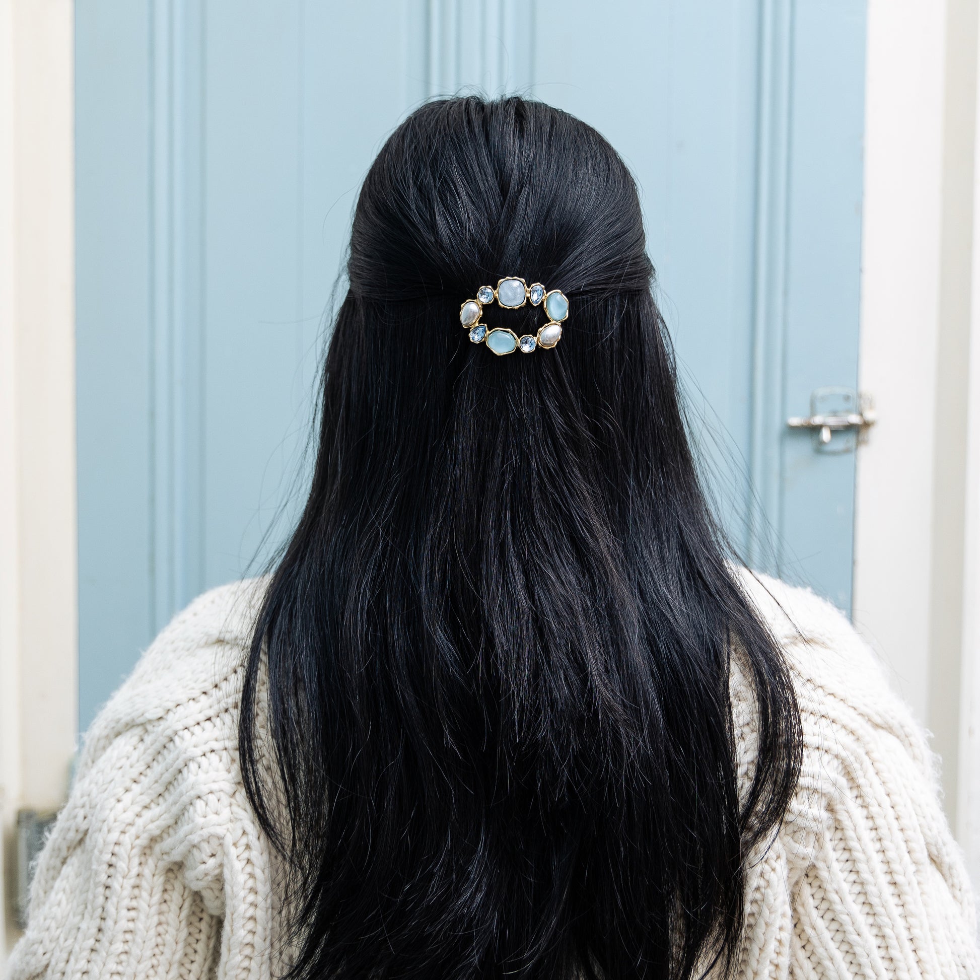 Unsere Haarspangen bestehen aus Celluloseacetat, einem pflanzlichen Biokunststoff mit ISCC PLUS-Zertifizierung. Im Vergleich zu erdölbasiertem Kunststoff ist Acetat nachhaltiger und biologisch abbaubar. Die Acetat- und Metallkomponenten wurden getestet und sind frei von Schadstoffen wie Blei, Cadmium und Phthalaten.