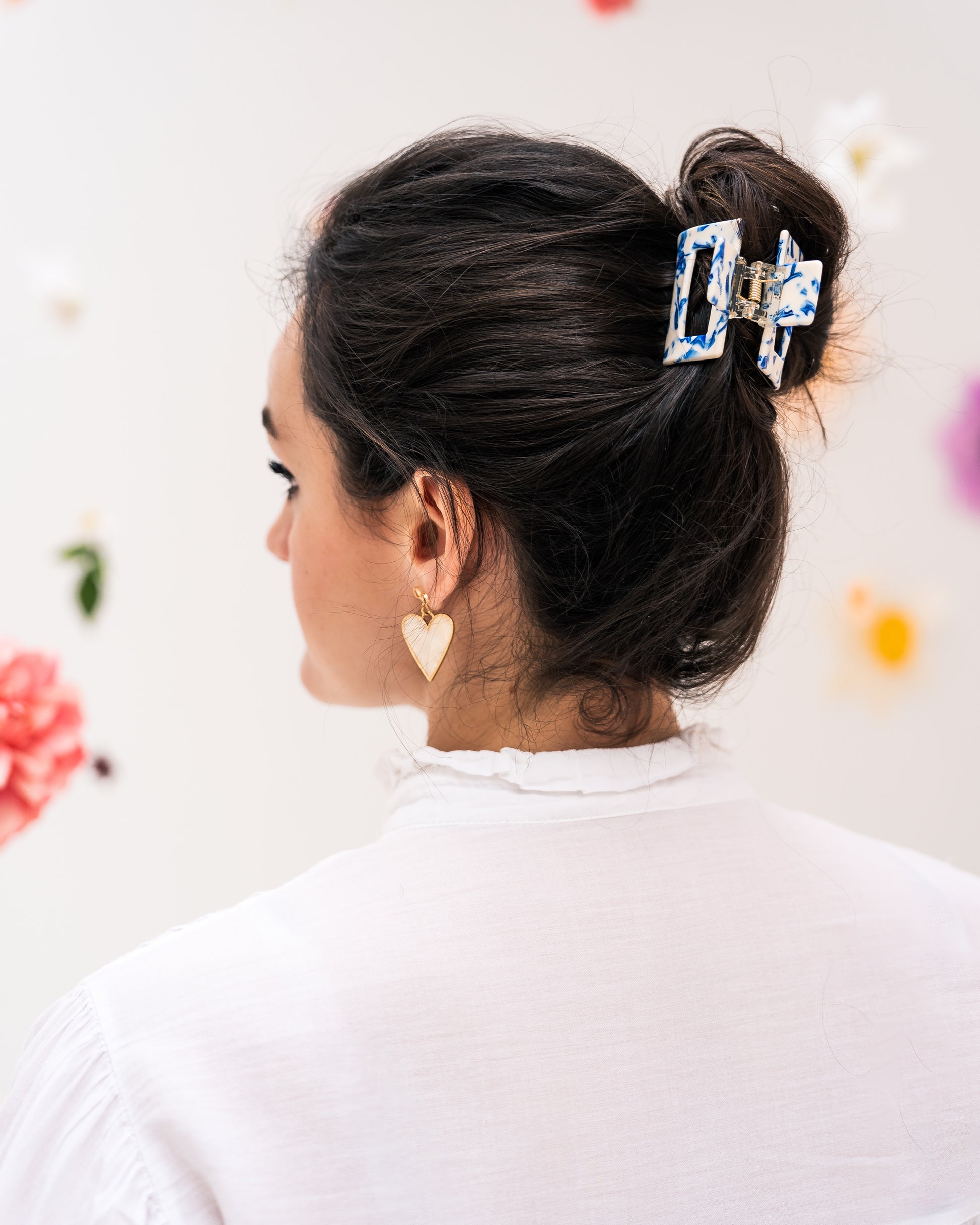 Unsere Haarspangen bestehen aus Celluloseacetat, einem pflanzlichen Biokunststoff mit ISCC PLUS-Zertifizierung. Im Vergleich zu erdölbasiertem Kunststoff ist Acetat nachhaltiger und biologisch abbaubar. Die Acetat- und Metallkomponenten wurden getestet und sind frei von Schadstoffen wie Blei, Cadmium und Phthalaten.